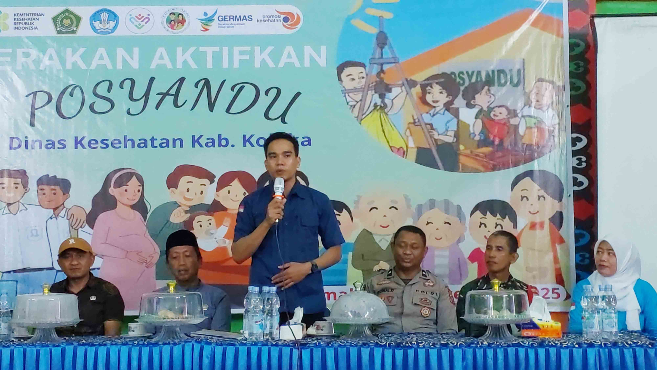 Kegiatan ini diawali dengan senam Sehat dan konsumsi sarapan bergizi bersama, yang kemudian dilanjutkan dengan acara pembukaan. Kegiatan ini secara resmi dibuka oleh Kepala Dinas kesehatan Kabupaten Kolaka dr. Muhammad Aris, S.Ked., M.KM. Dalam sambutannya beliau menyampaikan apresiasi bagi seluruh masyarakat dan stakeholder yang hadir untuk mendukung kegiatan ini. Beliau kembali menegaskan bahwa Posyandu bukan hanya menjadi tanggung jawab unsur kesehatan, tetapi menjadi tanggungjawab kita semua, butuh koordinasi dan kolaborasi yang baik agar posyandu ini dapat berjalan secara aktif. Ditambahkannya bahwa perlu ada inovasi dari Pemerintah Desa dalam mendorong keaktifan posyandu, misalnya jadikan hari posyandu ini menjadi hari besarnya desa, dengan demikian semua hal-hal yang kiranya akan dilaksanakan di desa, jika memungkinkan dapat disatukan pelaksanaanya pada saat jadwal posyandu sehingga dengan sendirinya kunjungan akan meningkat.