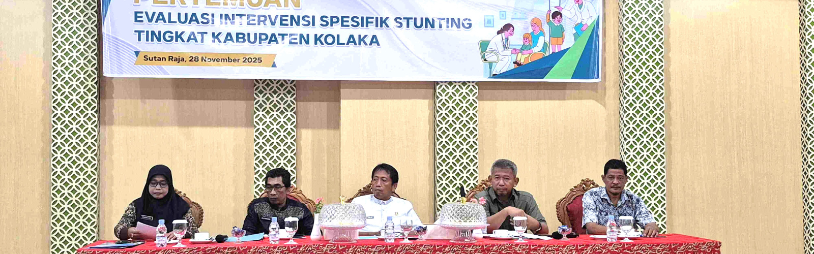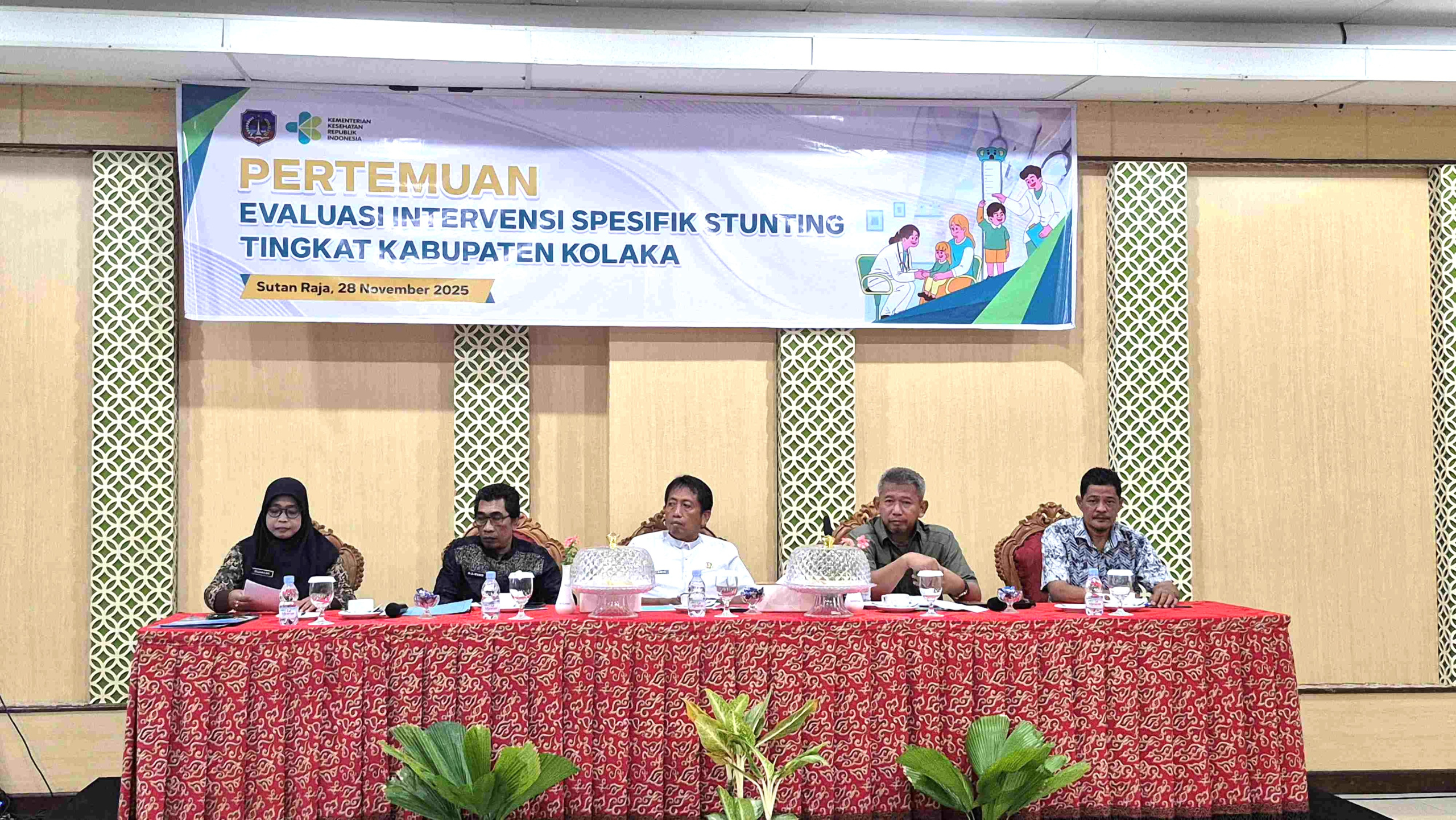 Kegiatan yang berlangsung di gedung pertemuan Hotel Sutan Raja Kolaka pada hari jumat 28 November 2025 dibuka oleh Sekretaris Daerah Kab. Kolaka yang diwakilkan oleh Asistem Pemerintahan dan Kesra Marsukat Riadi, SIP., M.Si. Dalam sambutannya disampaikan bahwa pemerintah pusat melalui Program Prioritas Cepat Terbaik Presiden seperti Makan Bergizi Gratis (MBG) dan Cek Kesehatan Gratis (CKG) menunjukkan keseriusan pemerintah dalam pencegahan masalah gizi. demikian pula dengan Pemerintah Kabupaten Kolaka telah melakukan berbagai upaya pencegahan stunting melalui intervensi spesifik dan sensitif namun penurunan stunting belum mencapai target nasional yaitu 14%. Meskipun demikian upaya percepatan pencegahan stunting di Kabupaten Kolaka mendapat apresiasi dari pemerintah pusat dan provinsi hal ini dibuktikan bahwa penilaian kinerja stunting berada pada peringkat i dari 17 kabupaten/kota selama 2 tahun berturut-turut. hal ini mejadi bukti bahwa pencegahan stunting di Kabupaten Kolaka masih menjadi prioritas, baik dari sisi program,  kegiatan maupun penganggaran. selain itu, juga menjadi bukti nyata kolaborasi yang semakin kuat antar semua pihak dalam upaya pencegaha stunting, olehnya itu saya sangat mengapresiasi kinerja kita semua dan juga atas terselenggaranya kegiatan ini sebagai wujud kepedulian kita terhadap masalah stunting.